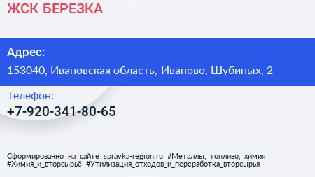 ЖСК БЕРЕЗКА по адресу 153040, Ивановская область, Иваново, Шубиных, 2 в дальнейшем Организация, размещена в следующих категориях: