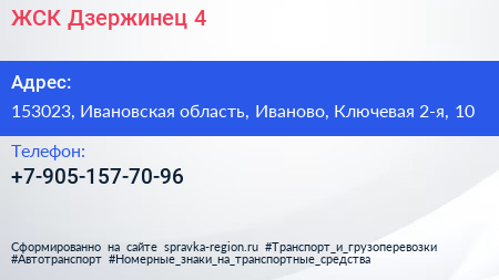 ЖСК Дзержинец-4 по адресу 153023, Ивановская область, Иваново, Ключевая 2-я, 10 в дальнейшем Организация, размещена в следующих категориях: