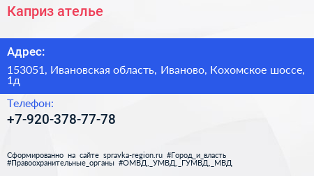 Каприз, ателье по адресу 153051, Ивановская область, Иваново, Кохомское шоссе, 1д в дальнейшем Организация, размещена в следующих категориях:
