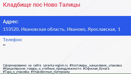 Кладбище, пос. Ново-Талицы по адресу 153520, Ивановская область, Иваново, Ярославская, 1 в дальнейшем Организация, размещена в следующих категориях: