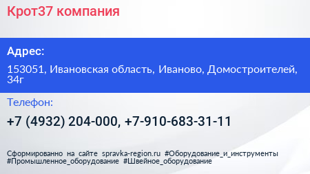 Крот37, компания по адресу 153051, Ивановская область, Иваново, Домостроителей, 34г в дальнейшем Организация, размещена в следующих категориях: