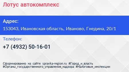 Лотус, автокомплекс по адресу 153043, Ивановская область, Иваново, Гнедина, 20/1 в дальнейшем Организация, размещена в следующих категориях: