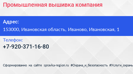 Промышленная вышивка, компания по адресу 153000, Ивановская область, Иваново, Ивановская, 1 в дальнейшем Организация, размещена в следующих категориях: