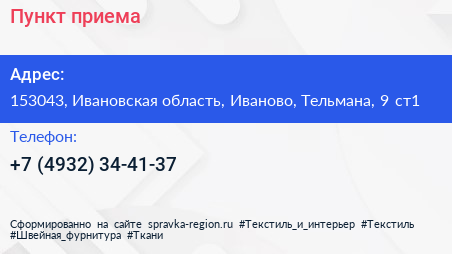 Пункт приема по адресу 153043, Ивановская область, Иваново, Тельмана, 9 ст1 в дальнейшем Организация, размещена в следующих категориях:
