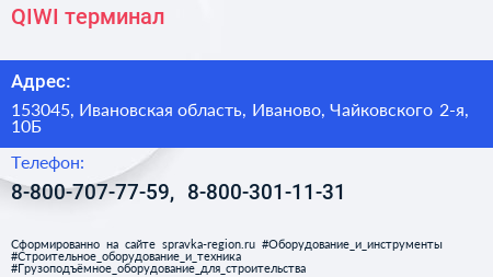 QIWI, терминал по адресу 153045, Ивановская область, Иваново, Чайковского 2-я, 10Б в дальнейшем Организация, размещена в следующих категориях: