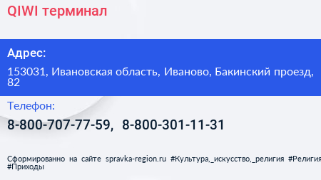 QIWI, терминал по адресу 153031, Ивановская область, Иваново, Бакинский проезд, 82 в дальнейшем Организация, размещена в следующих категориях: