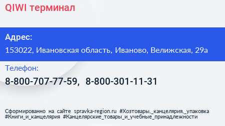 QIWI, терминал по адресу 153022, Ивановская область, Иваново, Велижская, 29а в дальнейшем Организация, размещена в следующих категориях: