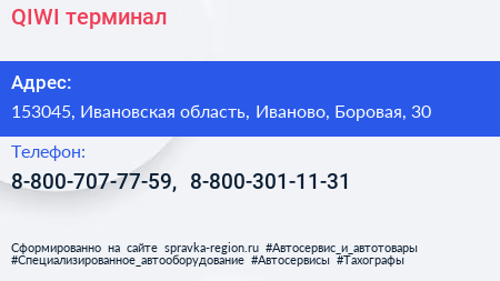 QIWI, терминал по адресу 153045, Ивановская область, Иваново, Боровая, 30 в дальнейшем Организация, размещена в следующих категориях: