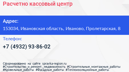 Расчетно-кассовый центр по адресу 153034, Ивановская область, Иваново, Пролетарская, 8 в дальнейшем Организация, размещена в следующих категориях: