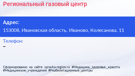 Региональный газовый центр по адресу 153008, Ивановская область, Иваново, Колесанова, 11 в дальнейшем Организация, размещена в следующих категориях: