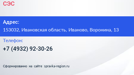 СЭС по адресу 153032, Ивановская область, Иваново, Воронина, 13 в дальнейшем Организация, размещена в следующих категориях: