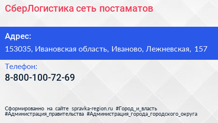 СберЛогистика, сеть постаматов по адресу 153035, Ивановская область, Иваново, Лежневская, 157 в дальнейшем Организация, размещена в следующих категориях: