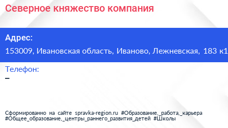 Северное княжество, компания по адресу 153009, Ивановская область, Иваново, Лежневская, 183 к1 в дальнейшем Организация, размещена в следующих категориях: