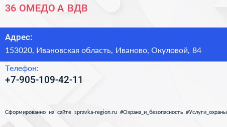 36 ОМЕДО(А) ВДВ по адресу 153020, Ивановская область, Иваново, Окуловой, 84 в дальнейшем Организация, размещена в следующих категориях: