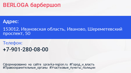 BERLOGA, барбершоп по адресу 153012, Ивановская область, Иваново, Шереметевский проспект, 50 в дальнейшем Организация, размещена в следующих категориях: