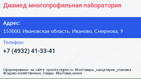 Диамед, многопрофильная лаборатория по адресу 153000, Ивановская область, Иваново, Смирнова, 9 в дальнейшем Организация, размещена в следующих категориях: