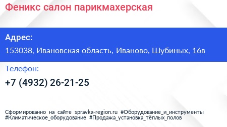 Феникс, салон-парикмахерская по адресу 153038, Ивановская область, Иваново, Шубиных, 16в в дальнейшем Организация, размещена в следующих категориях: