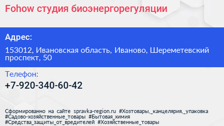 Fohow, студия биоэнергорегуляции по адресу 153012, Ивановская область, Иваново, Шереметевский проспект, 50 в дальнейшем Организация, размещена в следующих категориях: