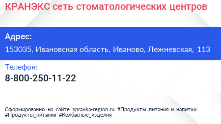 КРАНЭКС, сеть стоматологических центров по адресу 153035, Ивановская область, Иваново, Лежневская, 113 в дальнейшем Организация, размещена в следующих категориях:
