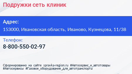 Подружки, сеть клиник по адресу 153000, Ивановская область, Иваново, Кузнецова, 11/38 в дальнейшем Организация, размещена в следующих категориях: