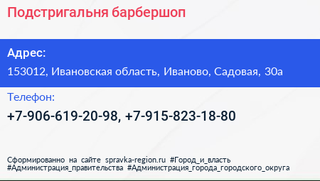 Подстригальня, барбершоп по адресу 153012, Ивановская область, Иваново, Садовая, 30а в дальнейшем Организация, размещена в следующих категориях: