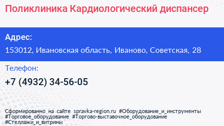 Поликлиника, Кардиологический диспансер по адресу 153012, Ивановская область, Иваново, Советская, 28 в дальнейшем Организация, размещена в следующих категориях: