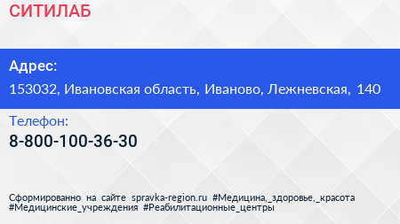 СИТИЛАБ по адресу 153032, Ивановская область, Иваново, Лежневская, 140 в дальнейшем Организация, размещена в следующих категориях: