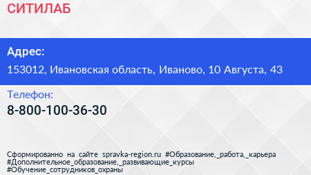 СИТИЛАБ по адресу 153012, Ивановская область, Иваново, 10 Августа, 43 в дальнейшем Организация, размещена в следующих категориях: