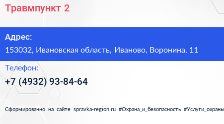 Травмпункт №2 по адресу 153032, Ивановская область, Иваново, Воронина, 11 в дальнейшем Организация, размещена в следующих категориях: