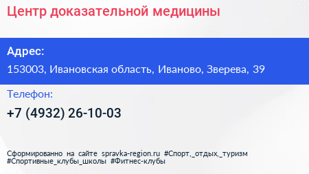 Центр доказательной медицины по адресу 153003, Ивановская область, Иваново, Зверева, 39 в дальнейшем Организация, размещена в следующих категориях: