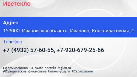 Ивстекло по адресу 153000, Ивановская область, Иваново, Конспиративная, 4 в дальнейшем Организация, размещена в следующих категориях:
