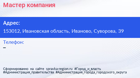 Мастер, компания по адресу 153012, Ивановская область, Иваново, Суворова, 39 в дальнейшем Организация, размещена в следующих категориях: