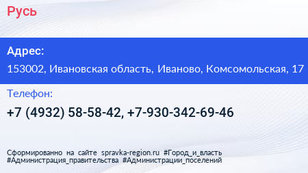 Русь по адресу 153002, Ивановская область, Иваново, Комсомольская, 17 в дальнейшем Организация, размещена в следующих категориях: