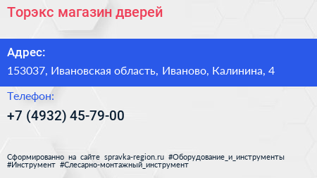 Торэкс, магазин дверей по адресу 153037, Ивановская область, Иваново, Калинина, 4 в дальнейшем Организация, размещена в следующих категориях:
