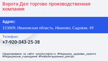 Ворота-Дел, торгово-производственная компания по адресу 153009, Ивановская область, Иваново, Садовая, 49 в дальнейшем Организация, размещена в следующих категориях: