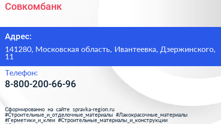 Совкомбанк по адресу 141280, Московская область, Ивантеевка, Дзержинского, 11 в дальнейшем Организация, размещена в следующих категориях: