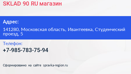 SKLAD-90.RU, магазин по адресу 141280, Московская область, Ивантеевка, Студенческий проезд, 5 в дальнейшем Организация, размещена в следующих категориях: