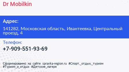 Dr. Mobilkin по адресу 141282, Московская область, Ивантеевка, Центральный проезд, 4 в дальнейшем Организация, размещена в следующих категориях: