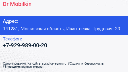 Dr.Mobilkin по адресу 141281, Московская область, Ивантеевка, Трудовая, 23 в дальнейшем Организация, размещена в следующих категориях: