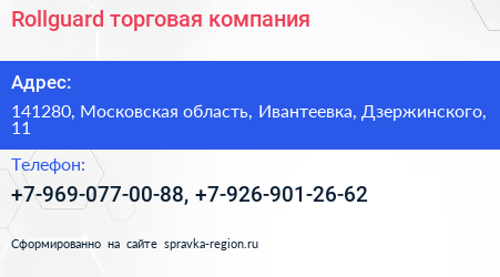 Rollguard, торговая компания по адресу 141280, Московская область, Ивантеевка, Дзержинского, 11 в дальнейшем Организация, размещена в следующих категориях: