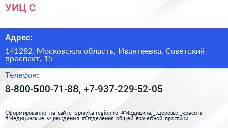 УИЦ С по адресу 141282, Московская область, Ивантеевка, Советский проспект, 15 в дальнейшем Организация, размещена в следующих категориях: