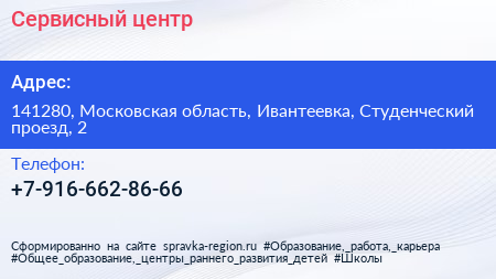Сервисный центр по адресу 141280, Московская область, Ивантеевка, Студенческий проезд, 2 в дальнейшем Организация, размещена в следующих категориях: