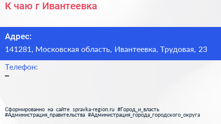К чаю, г. Ивантеевка по адресу 141281, Московская область, Ивантеевка, Трудовая, 23 в дальнейшем Организация, размещена в следующих категориях:
