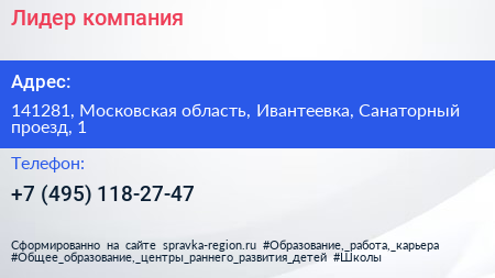 Лидер, компания по адресу 141281, Московская область, Ивантеевка, Санаторный проезд, 1 в дальнейшем Организация, размещена в следующих категориях: