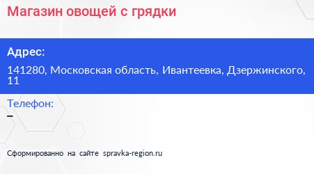 Магазин овощей с грядки по адресу 141280, Московская область, Ивантеевка, Дзержинского, 11 в дальнейшем Организация, размещена в следующих категориях: