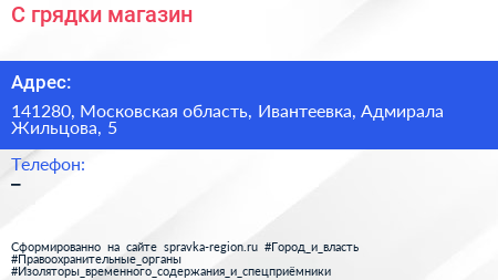 С грядки, магазин по адресу 141280, Московская область, Ивантеевка, Адмирала Жильцова, 5 в дальнейшем Организация, размещена в следующих категориях: