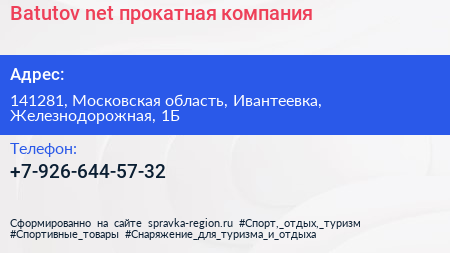 Batutov.net, прокатная компания по адресу 141281, Московская область, Ивантеевка, Железнодорожная, 1Б в дальнейшем Организация, размещена в следующих категориях: