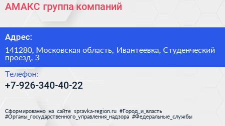 АМАКС, группа компаний по адресу 141280, Московская область, Ивантеевка, Студенческий проезд, 3 в дальнейшем Организация, размещена в следующих категориях: