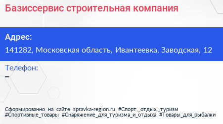 Базиссервис, строительная компания по адресу 141282, Московская область, Ивантеевка, Заводская, 12 в дальнейшем Организация, размещена в следующих категориях: