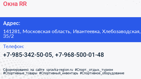 Окна RR по адресу 141281, Московская область, Ивантеевка, Хлебозаводская, 35/2 в дальнейшем Организация, размещена в следующих категориях: